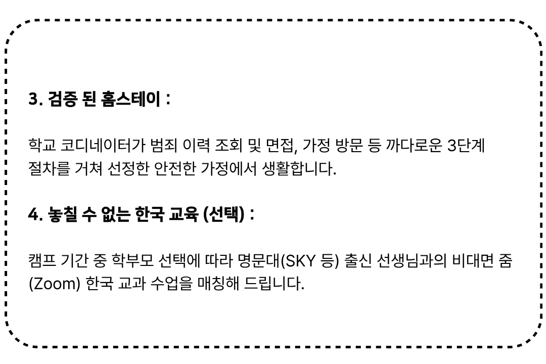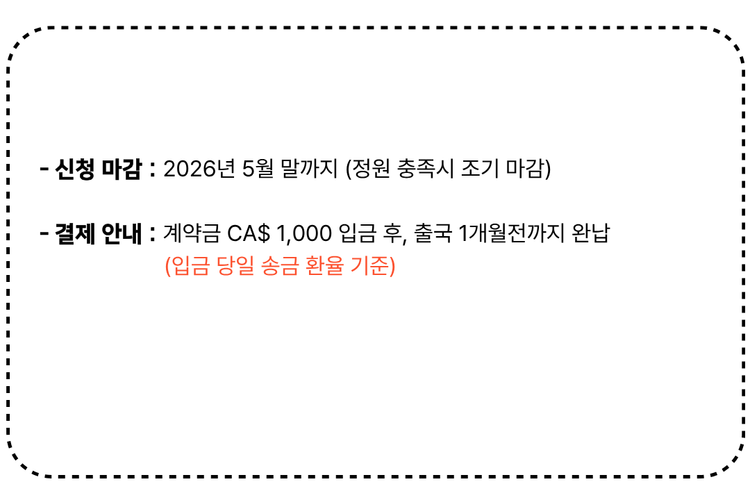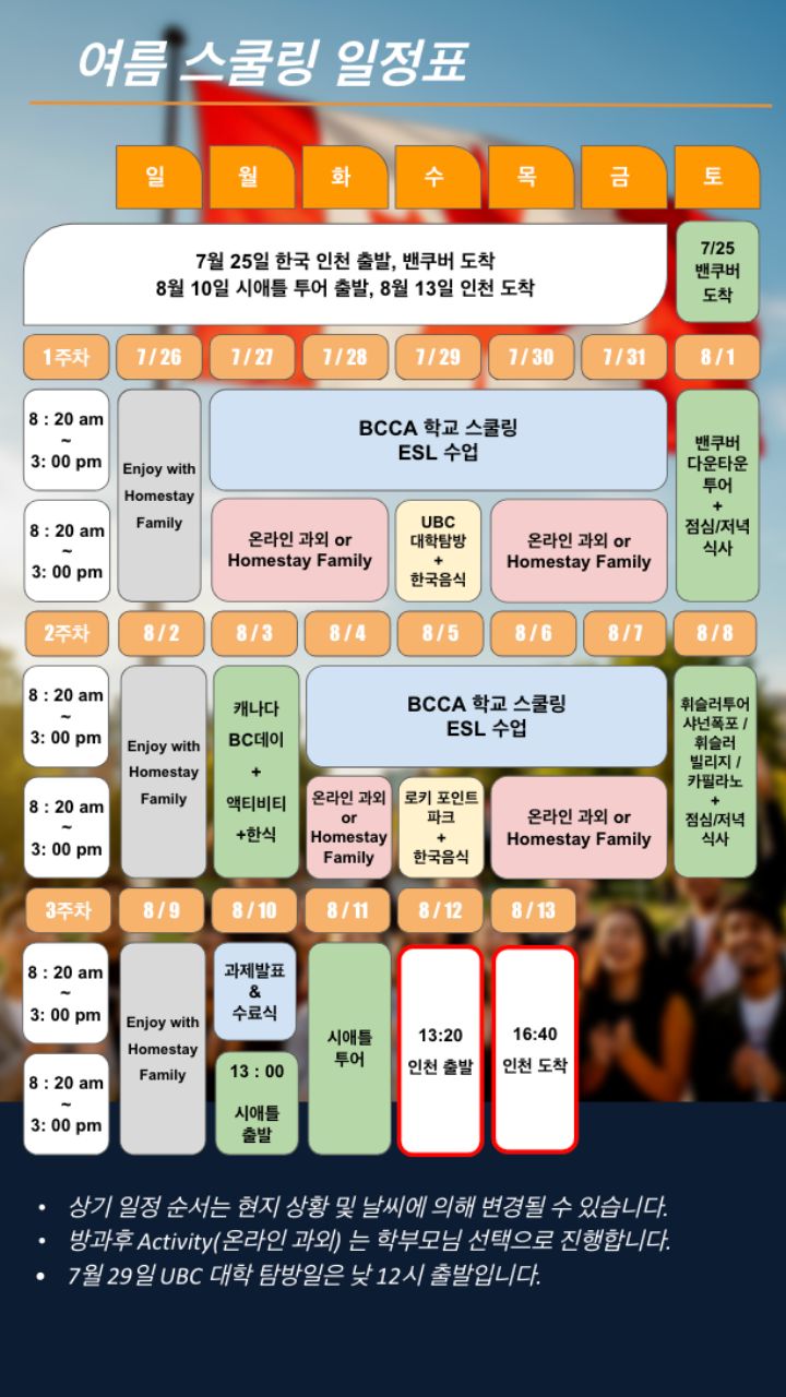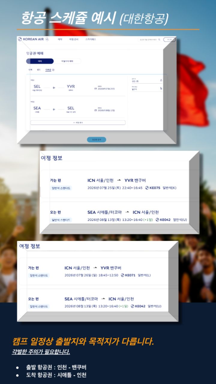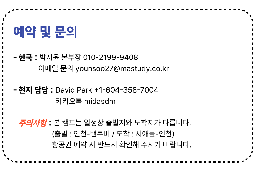 본 캠프는 항공권 발권, 숙소 예약, 현지 학교 등록이 사전에 완료되는 특수 상품으로,