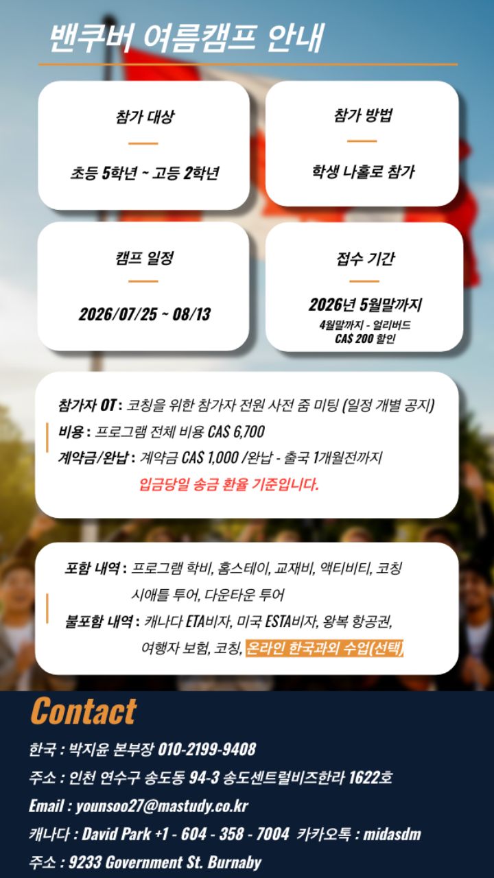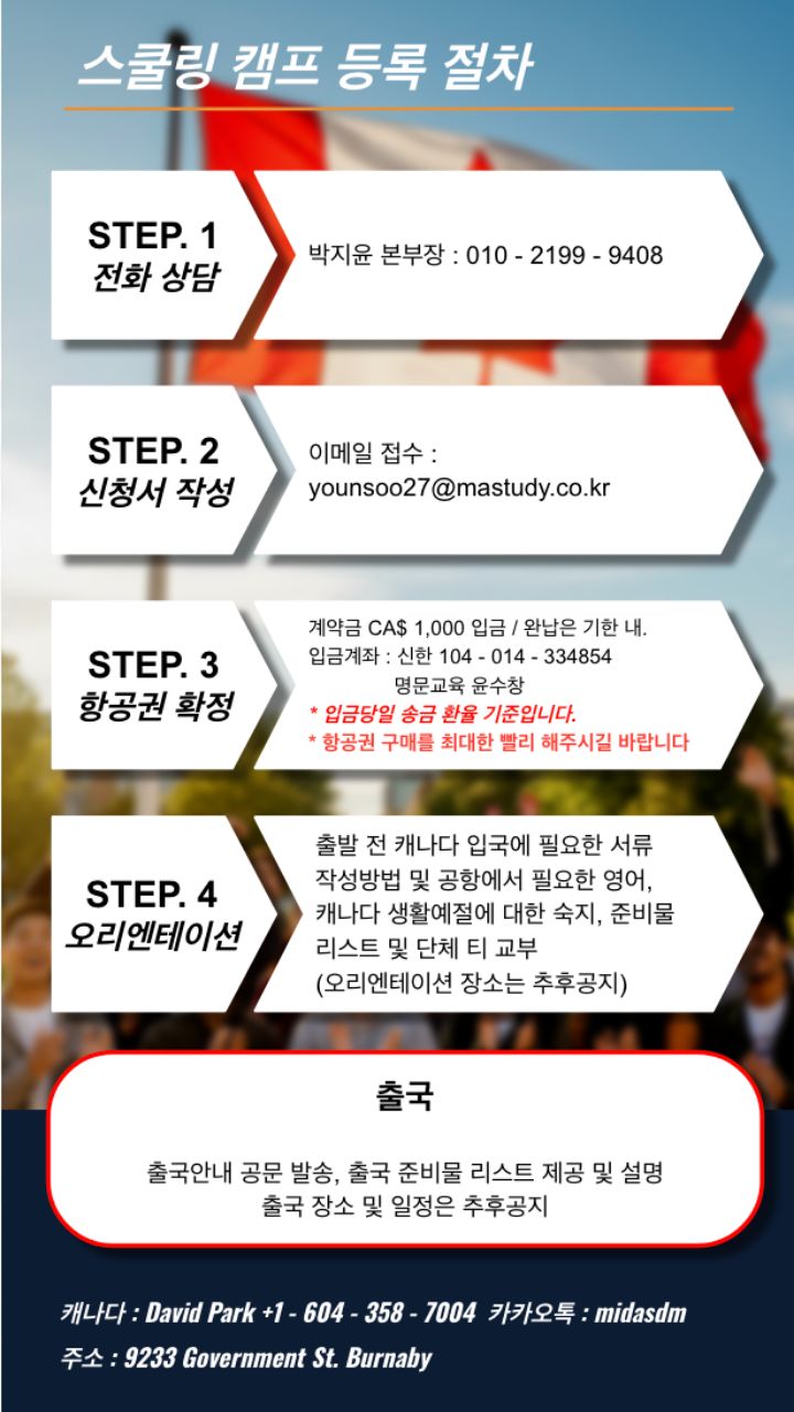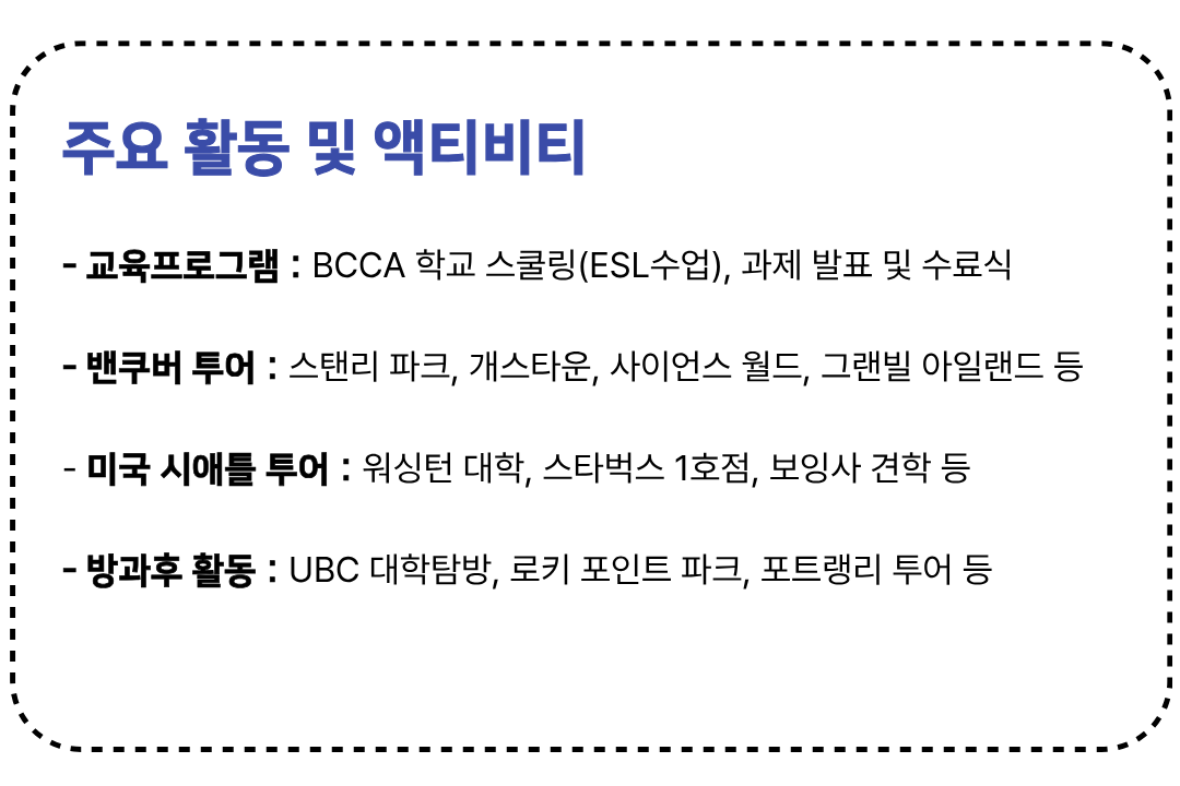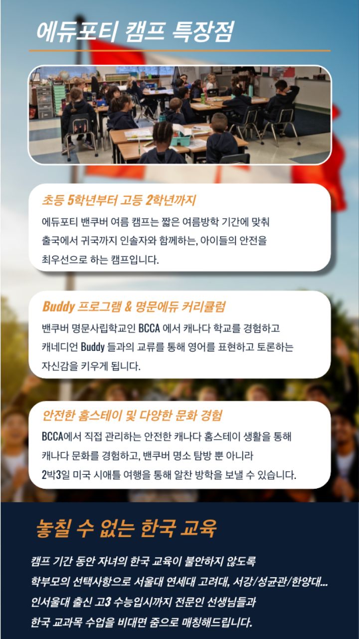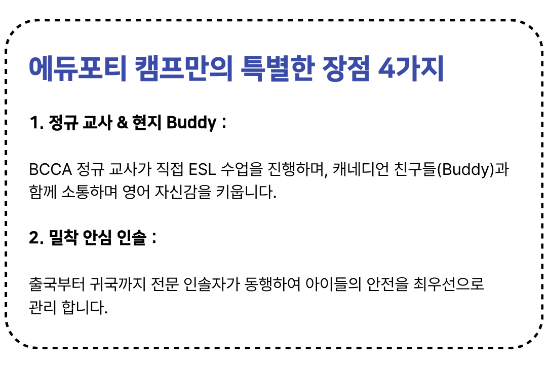 본 캠프는 항공권 발권, 숙소 예약, 현지 학교 등록이 사전에 완료되는 특수 상품으로,